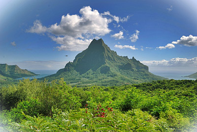 13 July: This is the island of postcard beauty, with the sandy beach just outside your door. Moorea's volcanic peaks soar magically out of the ocean in an explosion of green and velvet and reflect in the tranquil waters of Cook's Bay and Opunohu Bay. A wide, shallow lagoon surrounds the island's mountains where poetic threads of waterfalls tumble down the cliffs. It is a relaxed, barefoot existence that prevails and there is a real ambiance - from warmth in the air scented with tropical flowers to the fiery romantic sunsets that signal the end of another Tahitian day. B