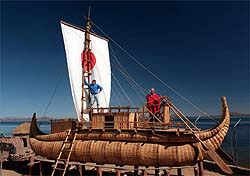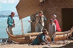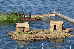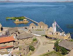 Full visit to the new "Andean Eco Village" (the authentic life styles of different ndean cultures) including: the artisans and fisherman villages, the Eco museum, thee ru-Chipayas mud igloos and floating islands (a culture dating back to the last glacier eriod), our llamas, alpacas, vicuñas and the endangered specie of the Suri, a sampleof the salt lake, etc Your visit includes: the CHULLPAS mortuary towers of several periods, the Limachi brothers and their new exclusive museum including all the reed rafts expeditions of our century, reed boat builders and a full size reproduction of the RA II used by Thor Heyerdhal in his epic expedition across the Atlantic. The Eco Museum shows the original home of our natives and a later improvement of their life style. A handicraft village where local artisans make the "Chicha" (local drink made out of corn), ceramics, "Abarcas" (native sandals made of old tires), the Melon Hats of the Indian women. You walk on an Inca trail to a stone village of local fishermen, the mud igloos & floating islands of the Urus Chipayas (a culture dating back to the last glacier period), as well as to the Takanas agricultural terraces and the famous Sukakollos (a man made micro climate system to optimize the harvests). You also see a sample of "Uyuni Salt Lake" and visualize the splendorof this huge sea of salt. A must for everybody.