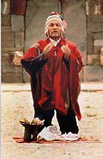 Audiovisual and night visit to "The Mystic World of the Kallawayas". These natural medicine doctors of Bolivia are authorized by law to practice medicine as any other MD and they were using penicillin, teramycin and quinine many centuries ago. They believe that you have first to heal the soul in order to heal the body and our Kallawaya "Tata Lorenzo", will bless visitors and tell a few persons their future, by casting his sacred coca leaves.